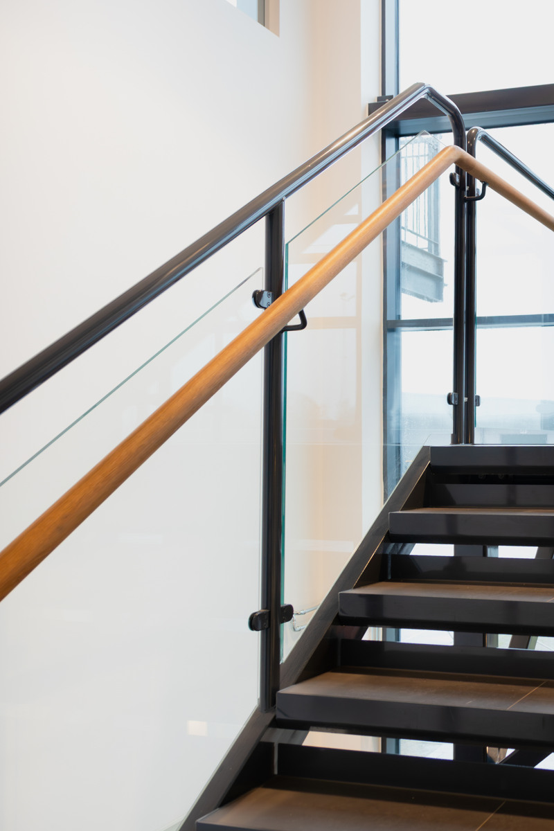 Räcken finns till alla typer av trappor. Utrymning, industri, bostad och offentliga miljöer. Räckeshöjden är som standard 1 100 mm i både trapplöp och på plan.