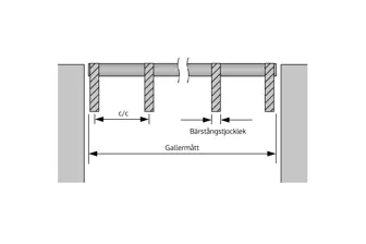 | Spännvidd: | Avståndet mellan två bärande balkar. Gallerdurken kan stöttas mot två eller flera balkar. |